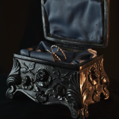 The VANITAS Necklace reveal a skull nestled within a rose, cradled by a delicate hand. Darkly romantic flowers that will never wilt.